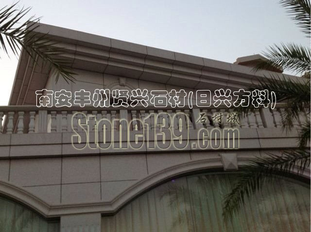 别墅柱子栏杆工程案例实景图,泉州白花岗岩石材别墅应用,主要装饰有护栏栏杆,柱子,圆柱方柱,雕刻产品,异形线条装饰,联系电话:13805902573